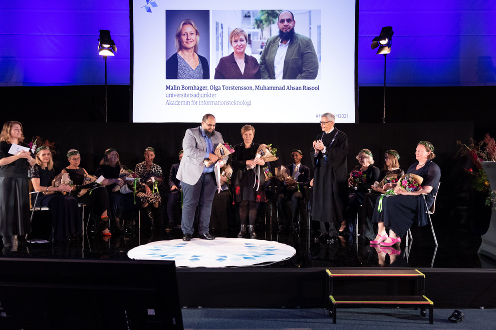 The University’s Prize for Collaboration and Innovation in 2021 was awarded to Olga Torstensson, Malin Bornhager and Muhammad Ahsan Rasool for their work with digital security. They are lecturers at the School of Information Technology at Halmstad University. They are responsible for the University’s Bachelor’s programme in IT Forensics and Information Security, as well as the Master’s Programme in Network Forensics. They also manage the University’s Cisco Academy and provide commissioned education in cyber security and network technology for various authorities, both Swedish and European.