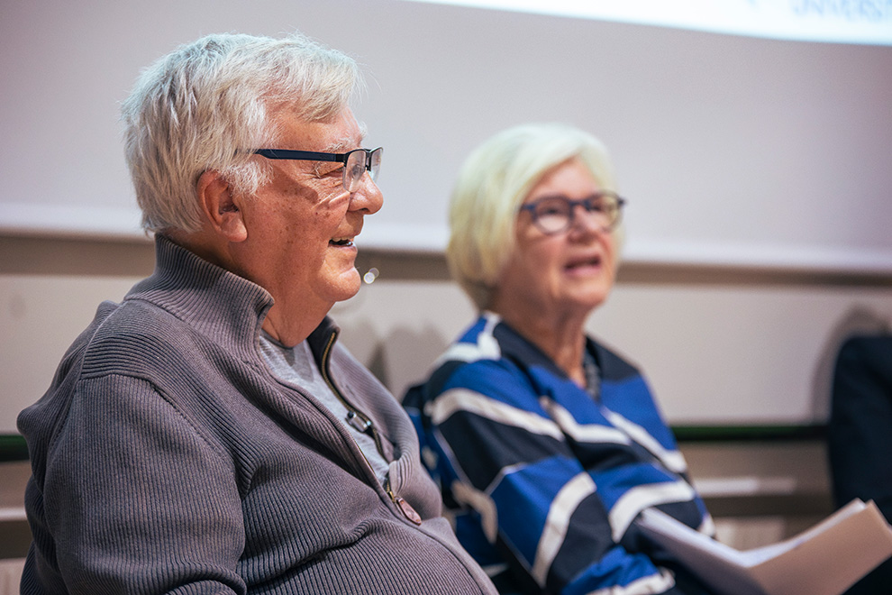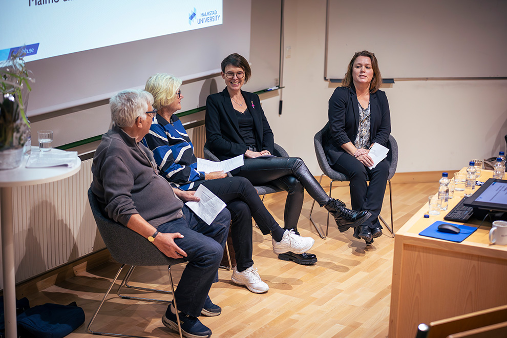 Två av programpunkterna var panelsamtal. Det första samtalet, som fördes mellan tidigare lärare i ämnet, handlade om hur det gick till när ämnet etablerades på Högskolan och när första versionen av programmet kom i gång.
