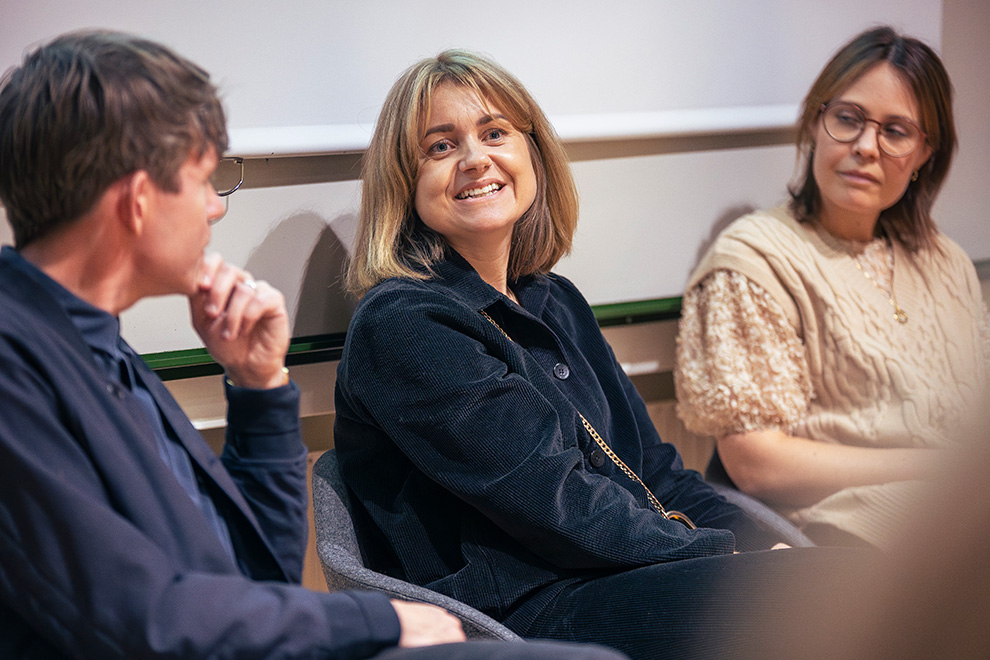 I det andra panelsamtalet talade alumner om vilka vägar de har valt efter utbildningen. Det är en blandning av att starta eget, att jobba med en mer kommunikationsinriktning och att arbeta med medieproduktion.